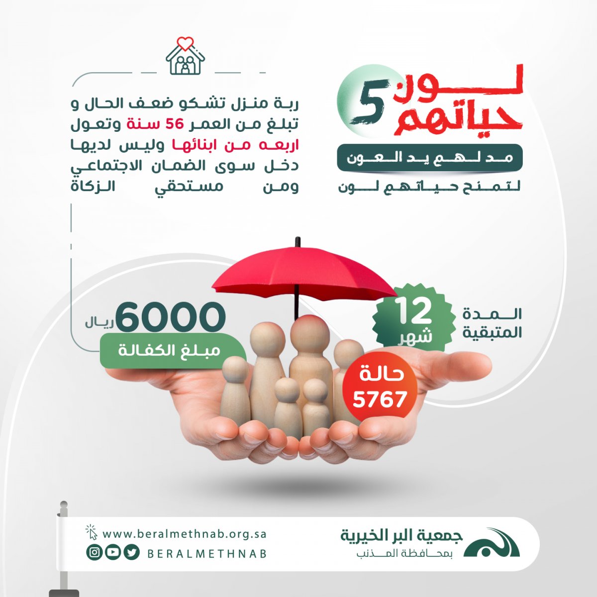 حالة 5488| هذه الأسرة المتعففة ربة منزل وتعول ابنها (وهي من مستحقي الزكاة) بحاجة ماسة لقلوب رحيمة تقف معها بـ إعانة شهرية تسد رمقهم، وتستر حالهم .